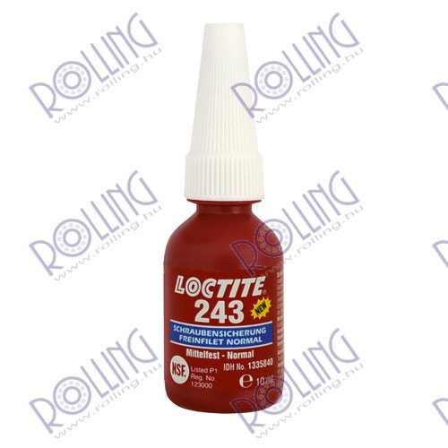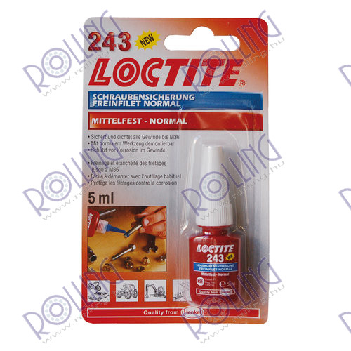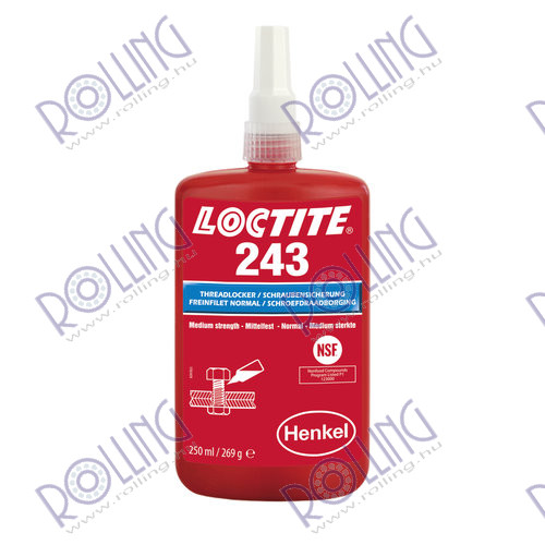 LOCTITE 243 is a medium strength blue threadlocking adhesive that seals and secures metal nuts and bolts to prevent loosening due to shock and vibration. LOCTITE® 243 is a general purpose threadlocker that provides a medium strength bond. LOCTITE 243 works on all metals, including passive substrates such as stainless steel, aluminum and plated surfaces. It is proven to be tolerant of minor contamination due to industrial oils, e.g., motor oils, corrosion prevention oils and cutting fluid.