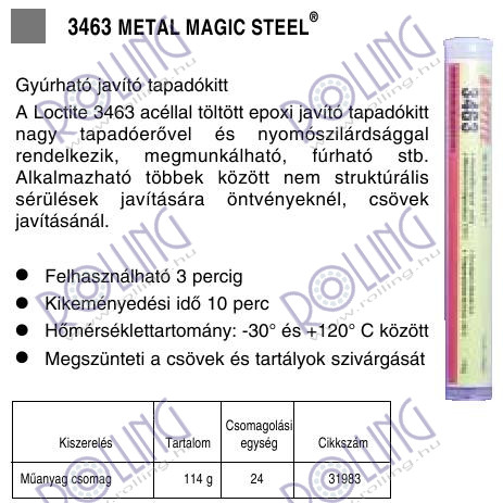 LOCTITE EA 3463 Így ismerik: LOCTITE 3463 Metal Magic Steel Stick
